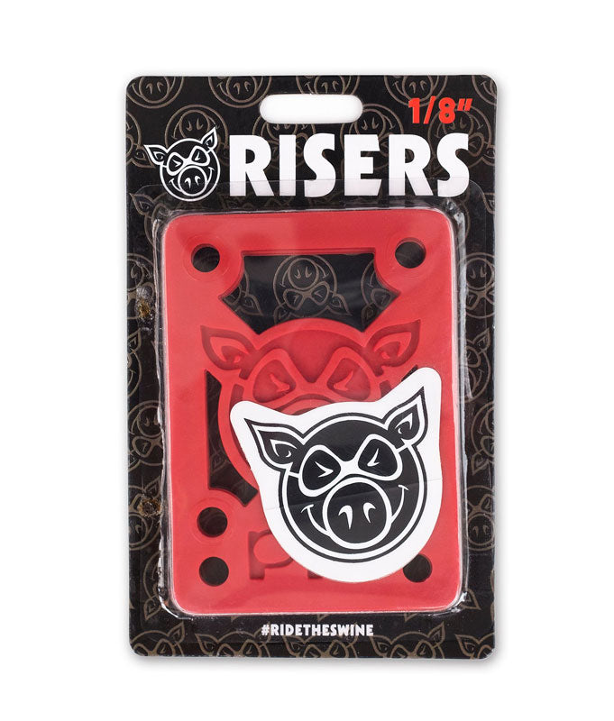 These pads will help prevent nasty wheel bite. The Pig Piles Blue Riser Pads 1/8 are hard plastic risers sold in a set of 2. Designed with Pig detailing.