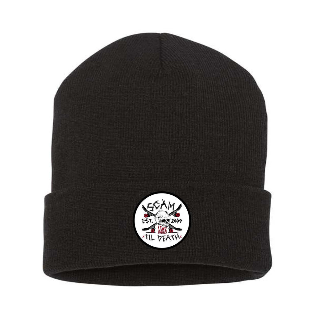 Til Death Skull logo patch on a comfy cuffed beanie.